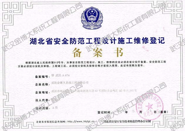 湖北省安防工程備案證