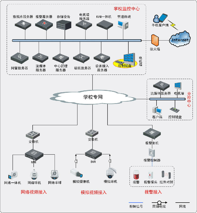 平安校園綜合安防系統(tǒng)主要包括視頻監(jiān)控系統(tǒng)、入侵報警系統(tǒng)等。通過海康威視集中監(jiān)控應(yīng)用管理系統(tǒng)平臺,能夠?qū)⒏髦行W(xué)校園綜合安防子系統(tǒng)無縫整合在一起,化被動監(jiān)控為主動監(jiān)控,能夠極大的提高視頻的利用效率,提升監(jiān)控系統(tǒng)的整體性能。