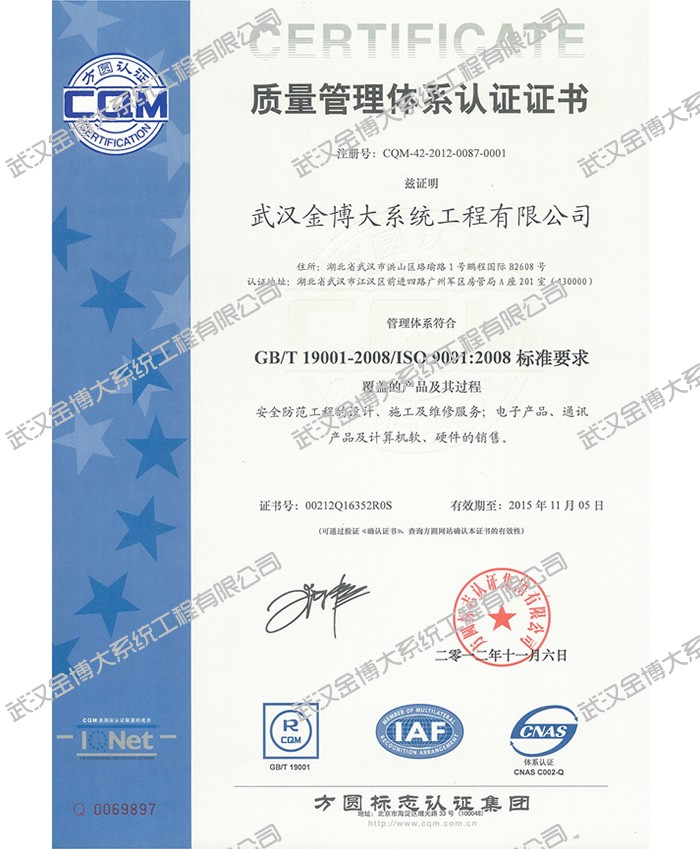 ISO9001質(zhì)量管理體系認(rèn)證證書
